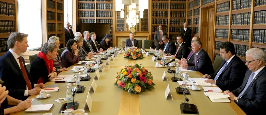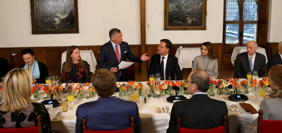Their Majesties King Abdullah II and Queen Rania Al Abdullah attend a government lunch hosted by Dutch Prime Minister Mark Rutte in honour of Their Majesties and the accompanying delegation