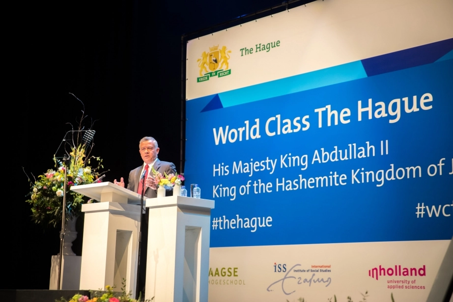 His Majesty King Abdullah II delivers a speech to the students of the World Class The Hague programme