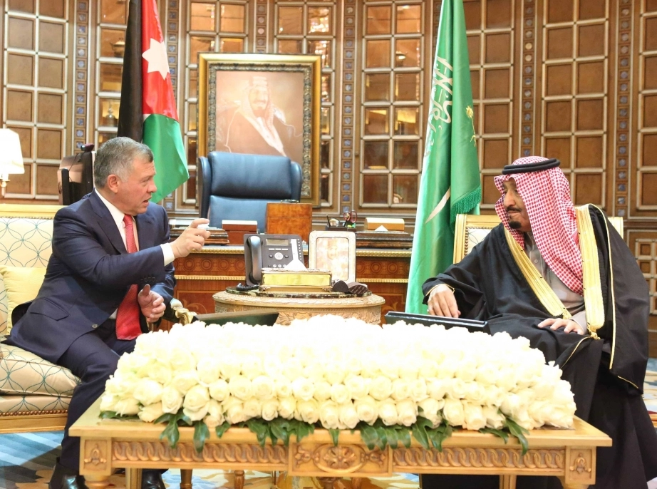 His Majesty King Abdullah II, accompanied by His Royal Highness Crown Prince Al Hussein bin Abdullah II, holds talks with Custodian of the Two Holy Mosques King Salman bin Abdulaziz of Saudi Arabia