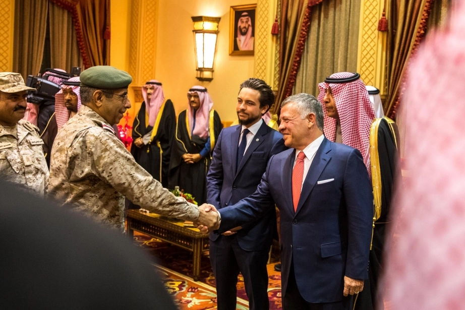 His Majesty King Abdullah II, accompanied by His Royal Highness Crown Prince Al Hussein bin Abdullah II, meets with His Royal Highness Saudi Crown Prince Mohammed bin Salman, who is also deputy prime minister, and minister of defence