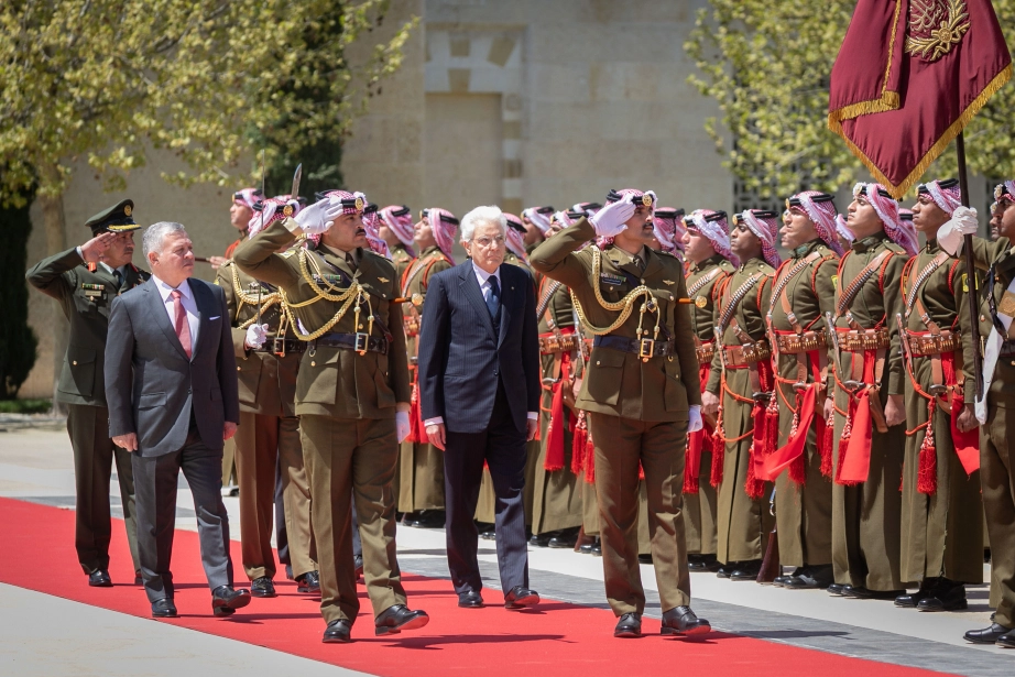 An official welcoming ceremony is held at Al Husseiniya Palace for President of Italy Sergio Mattarella