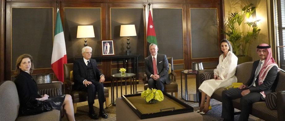 His Majesty King Abdullah II, accompanied by His Royal Highness Crown Prince Al Hussein bin Abdullah II, holds expanded talks with President of Italy Sergio Mattarella on opportunities for further political, economic, investment and energy cooperation