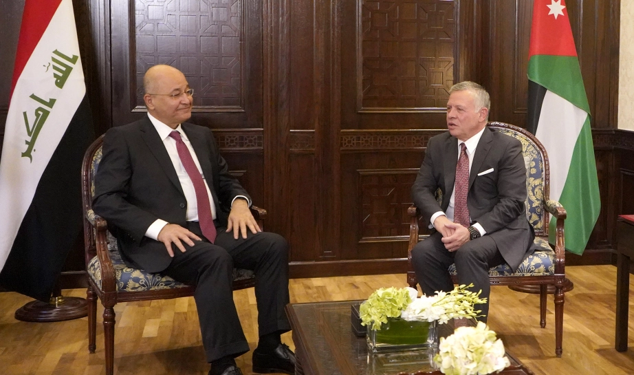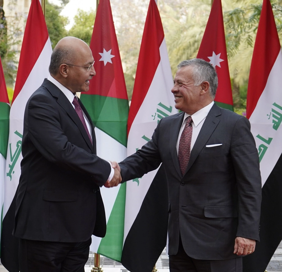His Majesty King Abdullah II, accompanied by His Royal Highness Crown Prince Al Hussein bin Abdullah II, holds talks with President of Iraq Barham Salih
