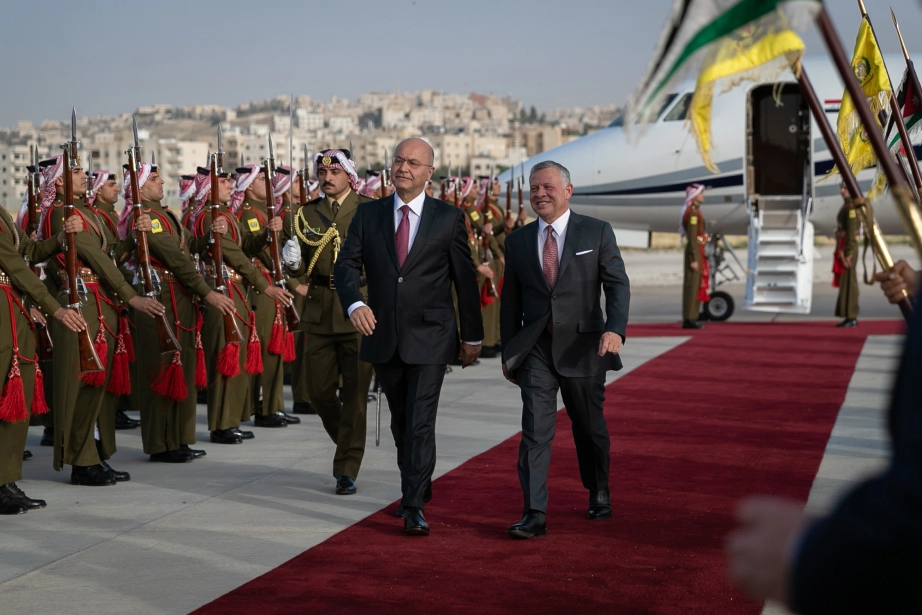 His Majesty King Abdullah II welcomes President of Iraq Barham Salih at Marka Military Airport