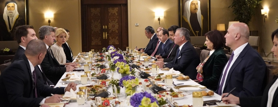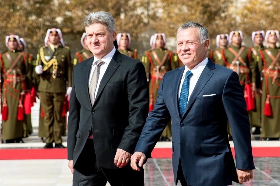 His Majesty King Abdullah II holds bilateral talks with President of the Republic of Macedonia Gjorge Ivanov at Al Husseiniya Palace, attended by Her Majesty Queen Rania Al Abdullah and First Lady of Macedonia Maja Ivanova