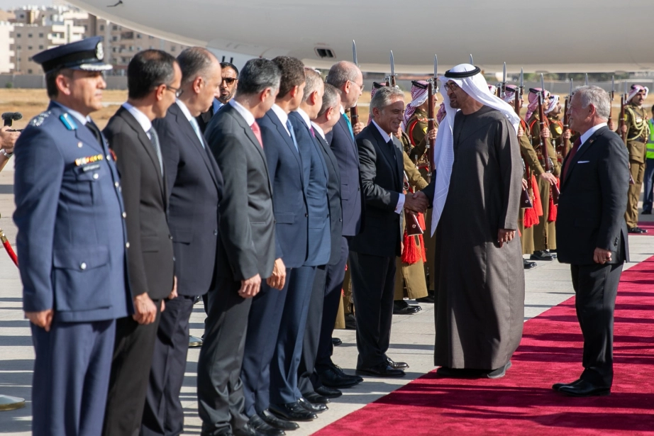 His Majesty King Abdullah II receives United Arab Emirates President Sheikh Mohamed bin Zayed Al Nahyan at Marka Airport