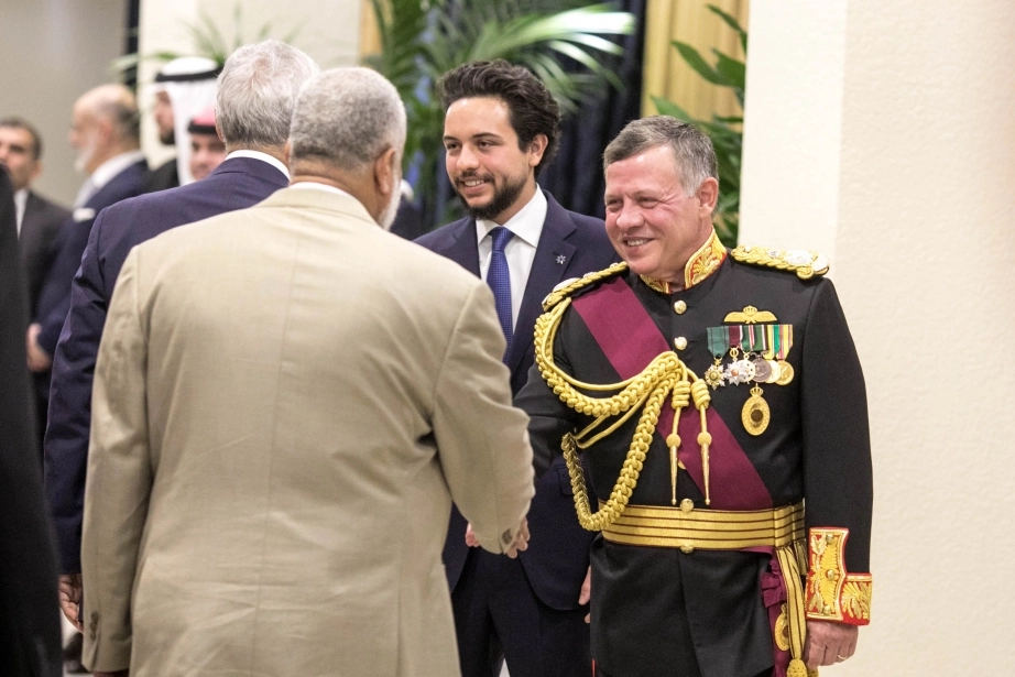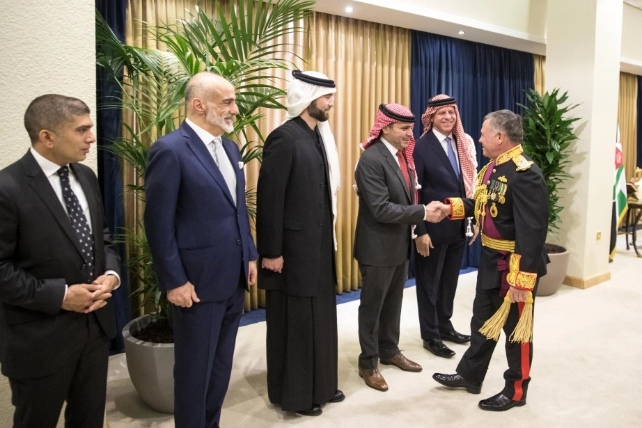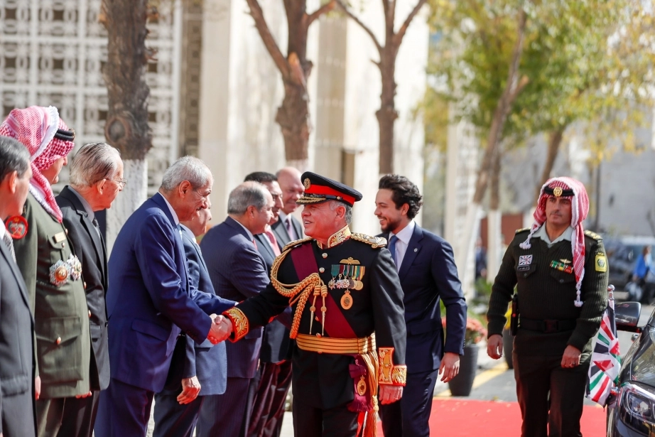 His Majesty King Abdullah II greets members of the Senate and the House of Representatives, as well as senior officials and officers
