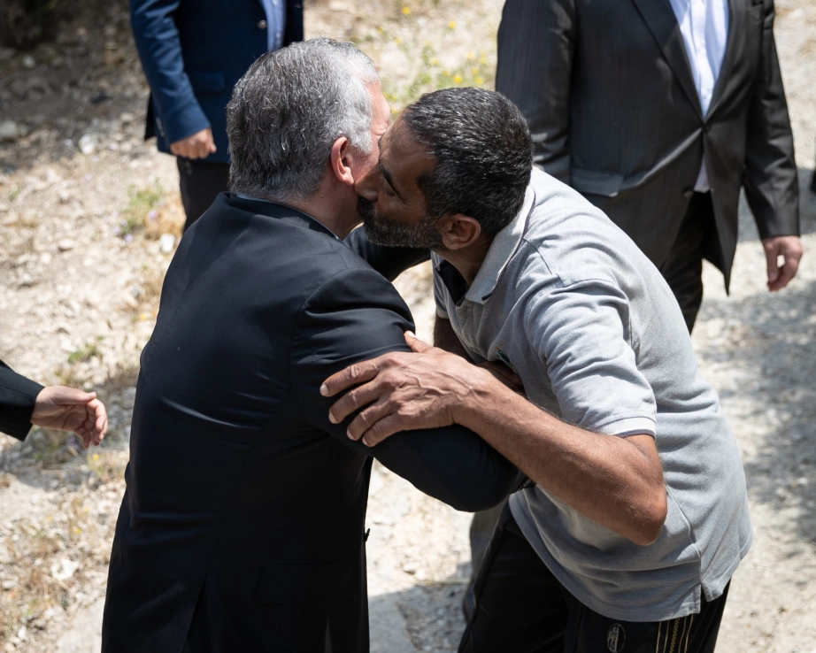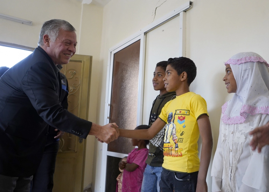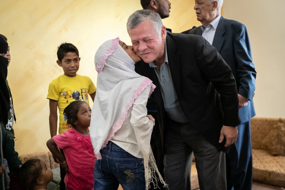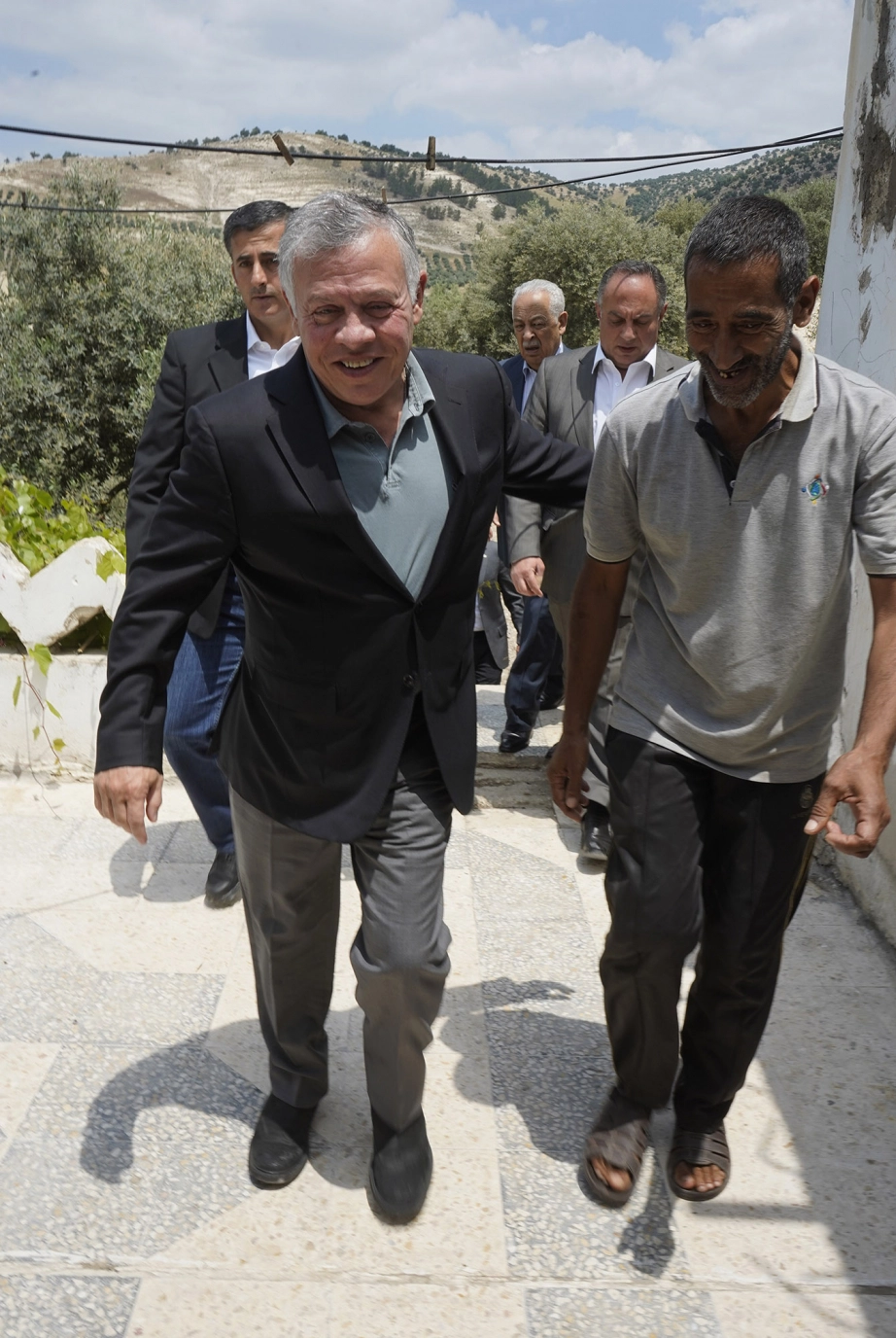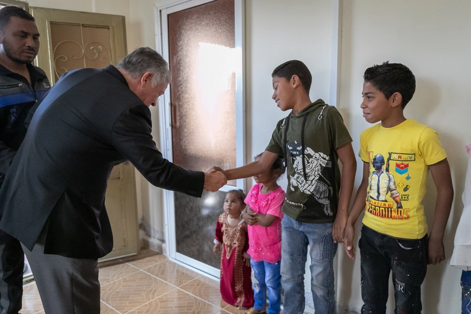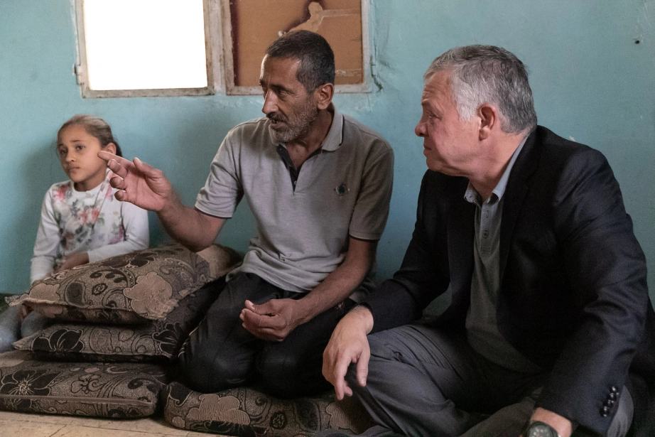 His Majesty King Abdullah II checks on the conditions of an underprivileged family in Al Mukheiba town in Irbid Governorate