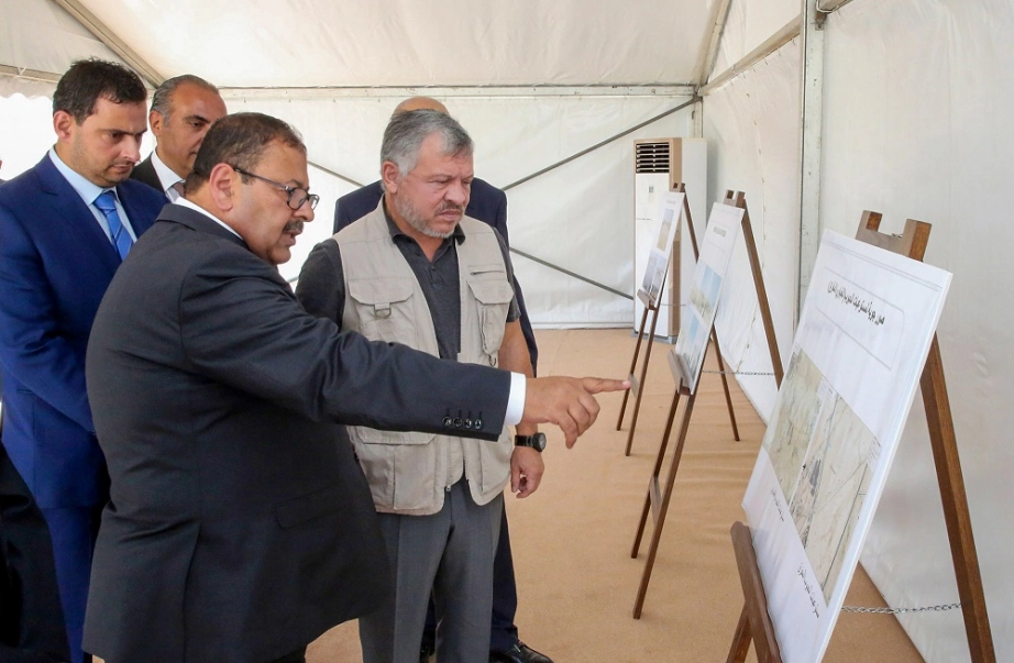 His Majesty King Abdullah II visits the horizontal bunker silos for grain storage at Ghabawi area, constructed under Royal directives to enhance food security in the Kingdom and boslter the storage capacity for strategic wheat reserves