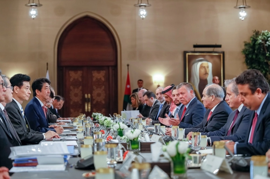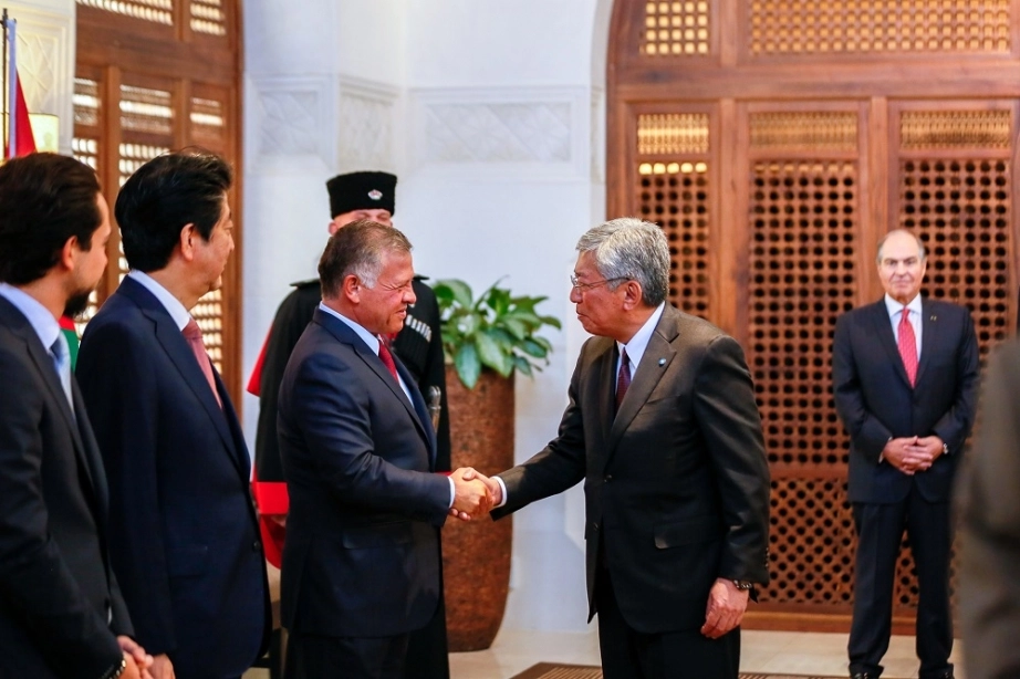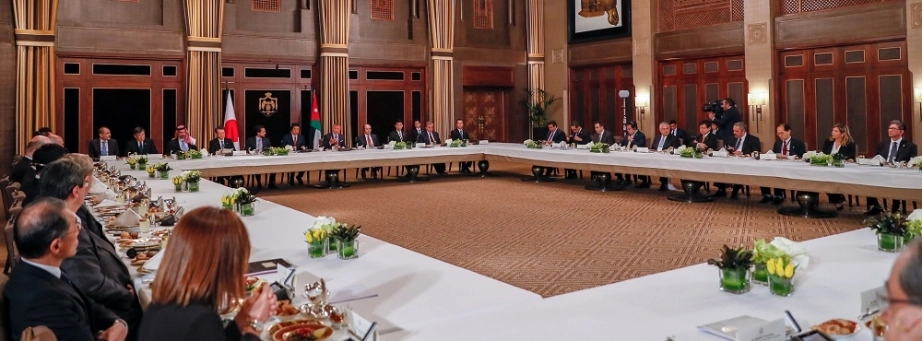 His Majesty accompanied by HRH Crown Prince Al Hussein bin Abdullah II hosts a working lunch in honour of Prime Minister of Japan Shinzo Abe and the accompanying delegation, which includes CEOs of a number of major Japanese companies