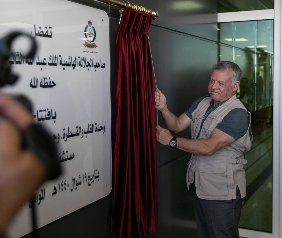 His Majesty King Abdullah II visits Karak Governorate and inaugurates catheterisation, cardiac surgery, burns and kidney stone crushing units at Karak Public Hospital, opened as part of its expansion project to improve medical services in the southern reg