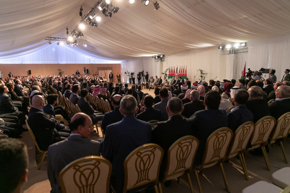 His Majesty King Abdullah II meets with representatives and key figures of Karak Governorate, as part of an ongoing series of outreach meetings to check on Jordanians’ conditions and their needs in terms of services and development