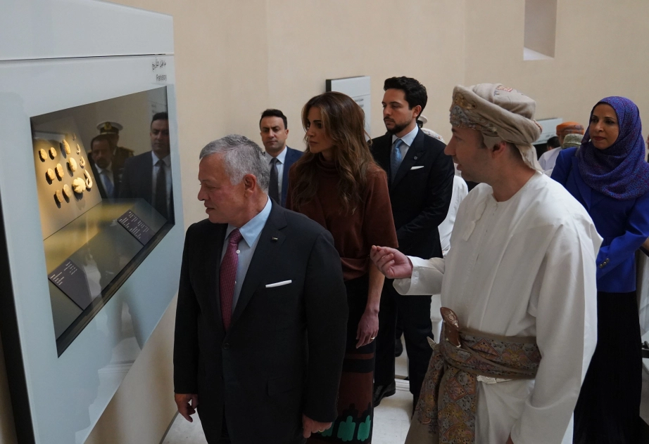 Their Majesties King Abdullah II and Queen Rania and His Royal Highness Crown Prince Al Hussein visit the National Museum of Oman and are briefed on its collections and artefacts that reflect Oman’s heritage, history, and culture
