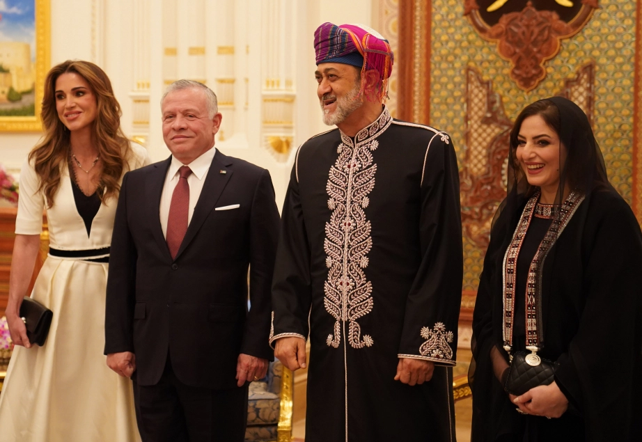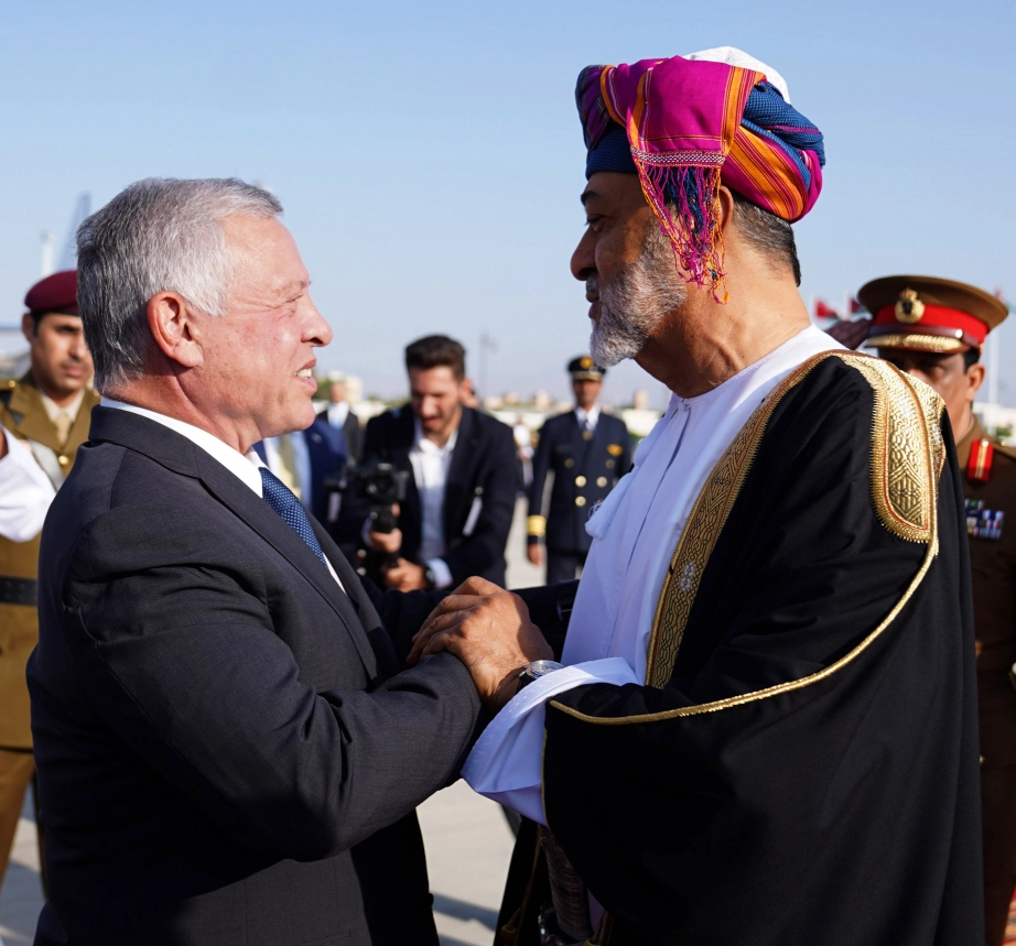 King Abdullah II and Sultan Haitham bin Tarik of Oman hold bilateral talks at Al Alam Palace, attended by Crown Prince Al Hussein, to discuss the deep-rooted ties between Jordan and Oman and the latest regional and international developments