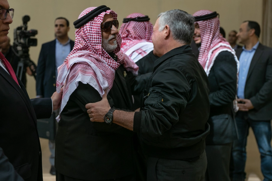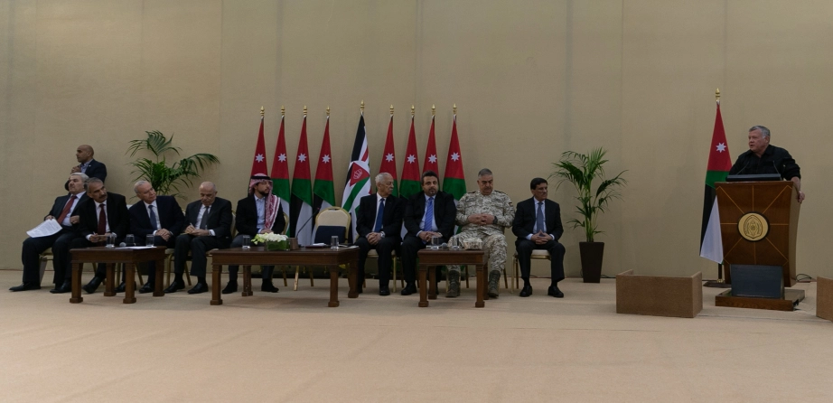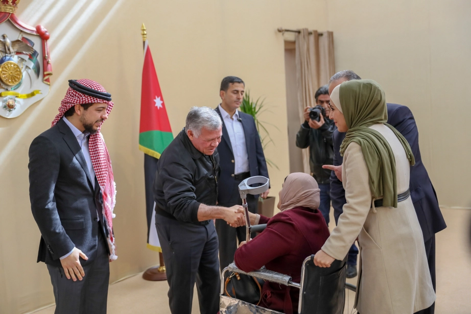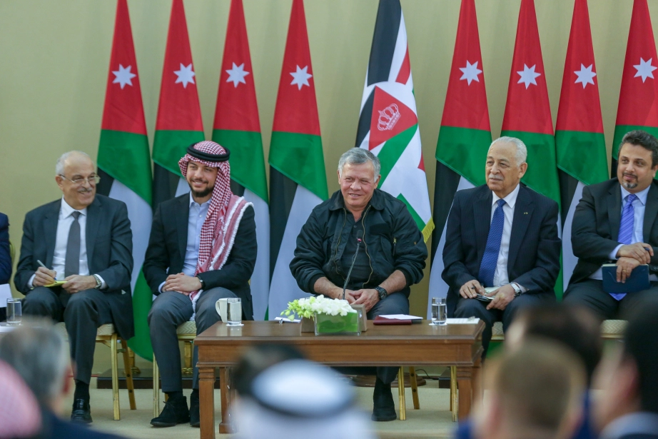 His Majesty King Abdullah II, accompanied by His Royal Highness Crown Prince Al Hussein bin Abdullah II, meets with representatives and key figures from Tafileh Governorate