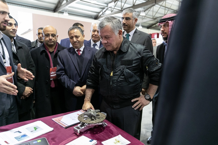 His Majesty King Abdullah II, accompanied by His Royal Highness Crown Prince Al Hussein bin Abdullah II, inaugurates the engineering workshops building at Tafileh Technical University