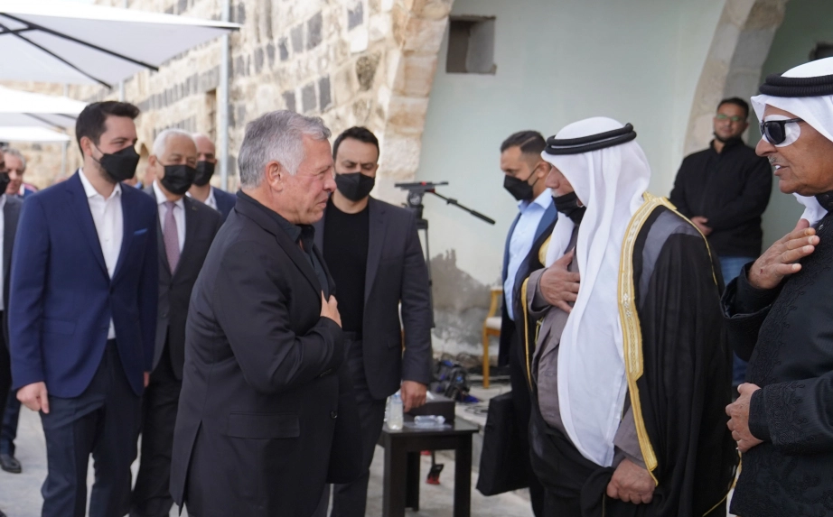 His Majesty King Abdullah II, accompanied by His Royal Highness Crown Prince Al Hussein, meets with a number of Umm Qais figures in Irbid Governorate