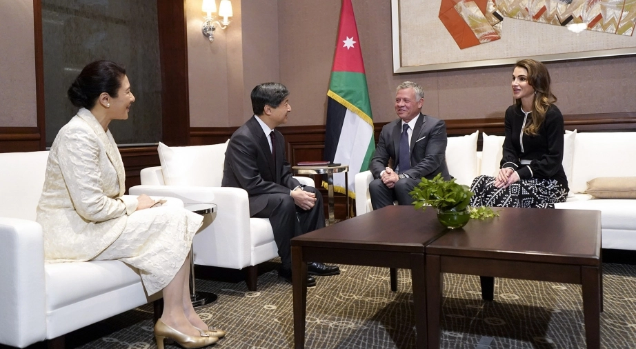 Their Majesties King Abdullah II and Queen Rania Al Abdullah meet with Crown Prince Naruhito and Crown Princess Masako of Japan