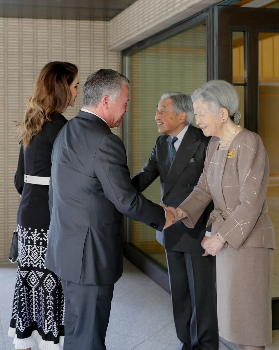 Their Majesties King Abdullah II and Queen Rania Al Abdullah are received by Emperor Akihito and Empress Michiko of Japan at Tokyo Imperial Palace