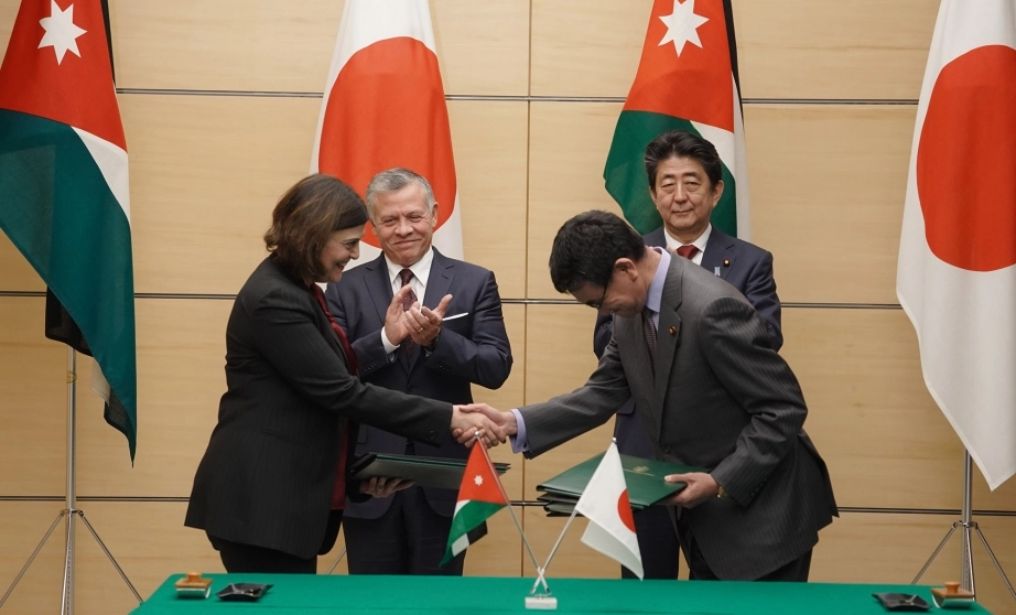 His Majesty King Abdullah II and Japanese Prime Minister Shinzo Abe witness the signing of agreements between Jordan and Japan