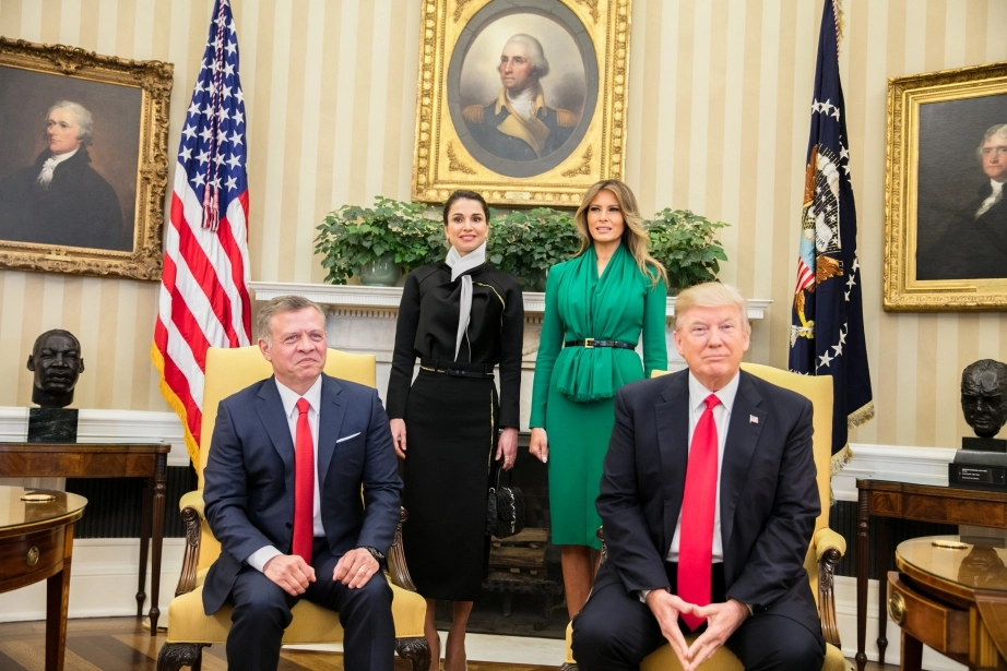 Their Majesties King Abdullah II and Queen Rania with US President Donald Trump and First Lady Melania Trump at the White House