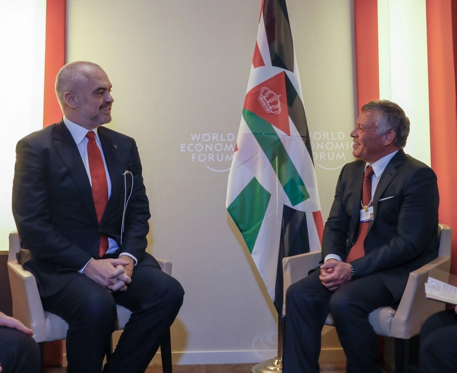His Majesty King Abdullah II, accompanied by His Royal Highness Crown Prince Al Hussein bin Abdullah II, meets with Prime Minister of Albania Edi Rama