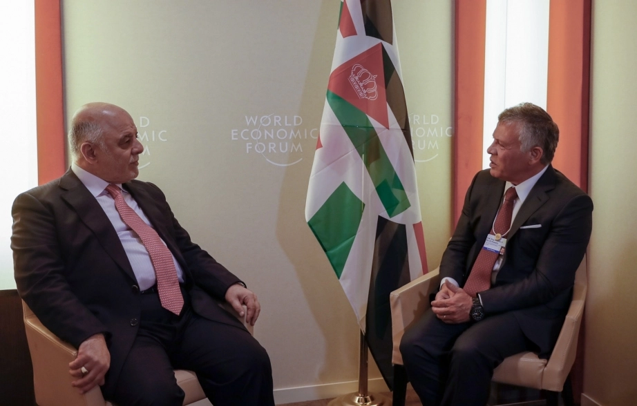 His Majesty King Abdullah II, accompanied by His Royal Highness Crown Prince Al Hussein bin Abdullah II, meets Prime Minister of Iraq Haider Al Abadi
