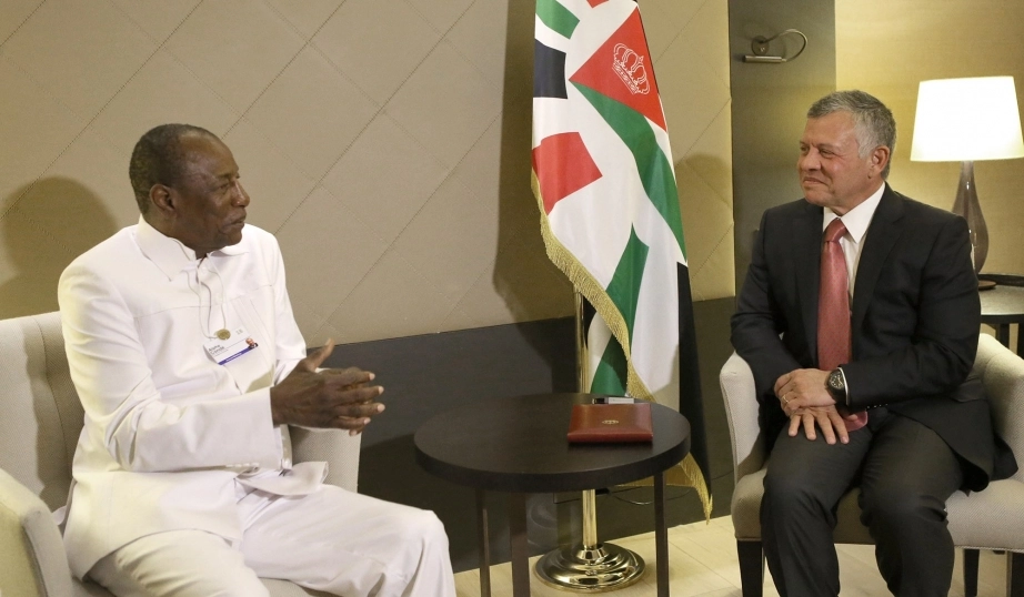 His Majesty King Abdullah II meets with President of Guinea Alpha Condé in Davos