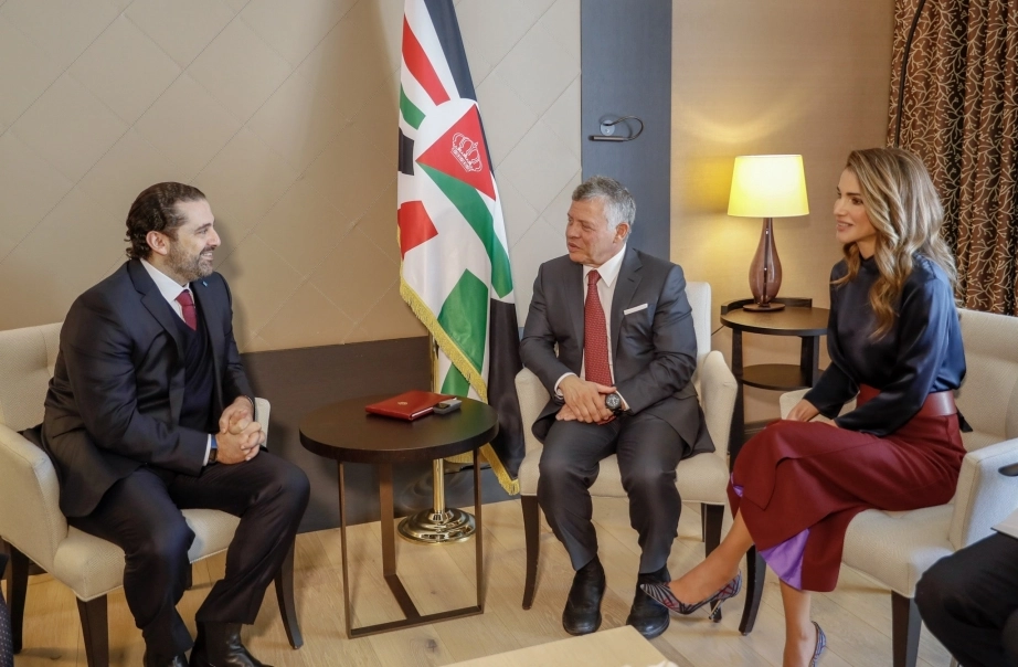 His Majesty King Abdullah II, accompanied by Her Majesty Queen Rania Al Abdullah, meets with President of the Council of Ministers of Lebanon Saad Hariri