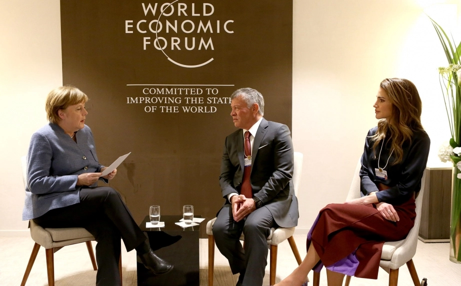 His Majesty King Abdullah II speaks to CNN’s Fareed Zakaria during a session at the World Economic Forum Annual Meeting in Davos, attended by Her Majesty Queen Rania Al Abdullah and His Royal Highness Crown Prince Al Hussein bin Abdullah II