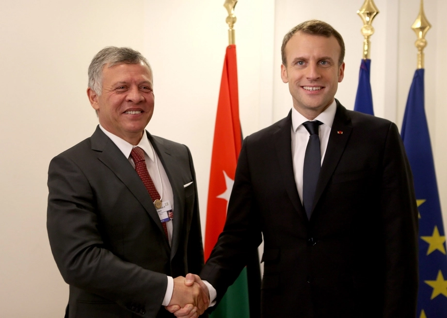 His Majesty King Abdullah II meets with French President Emmanuel Macron