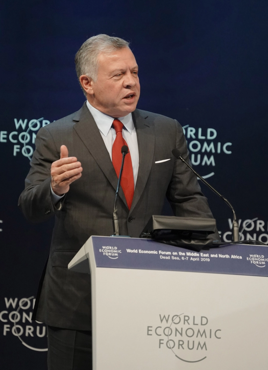 His Majesty King Abdullah II delivers the keynote speech at the opening session of the World Economic Forum on the Middle East and North Africa