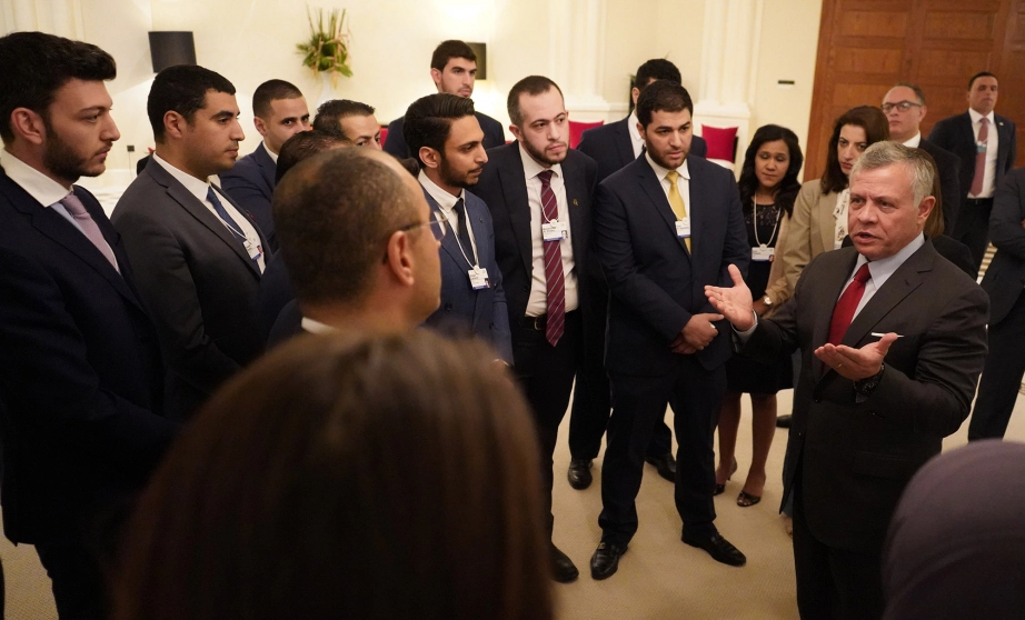 His Majesty King Abdullah II meets with a group of young Jordanian entrepreneurs whose start-ups have been selected by the World Economic Forum among the top 100 Arab start-ups, and stresses the importance of spreading the culture of innovation
