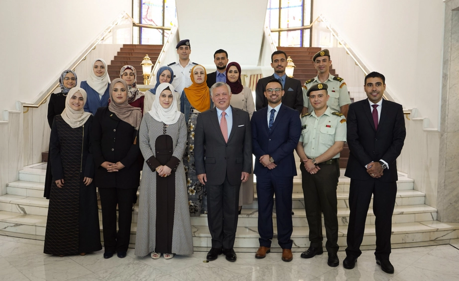 His Majesty Meets with a group of young people he previously met 17 years ago during the first school trip to Raghadan Palace
