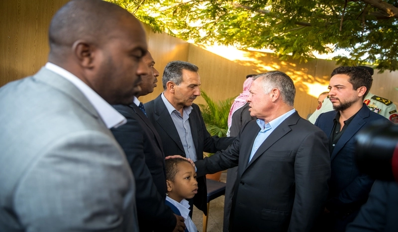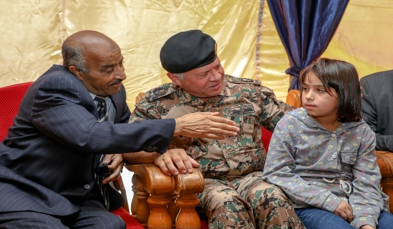 His Majesty, accompanied by HRH Crown Prince, meets with the families of Fuheis and Salt martyrs