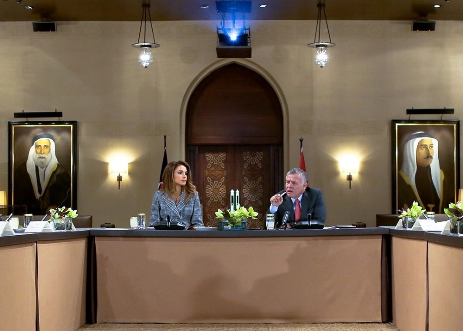 His Majesty King Abdullah II, accompanied by Her Majesty Queen Rania Al Abdullah, chairs a meeting to follow up on the implementation of the National Strategy for Human Resources Development