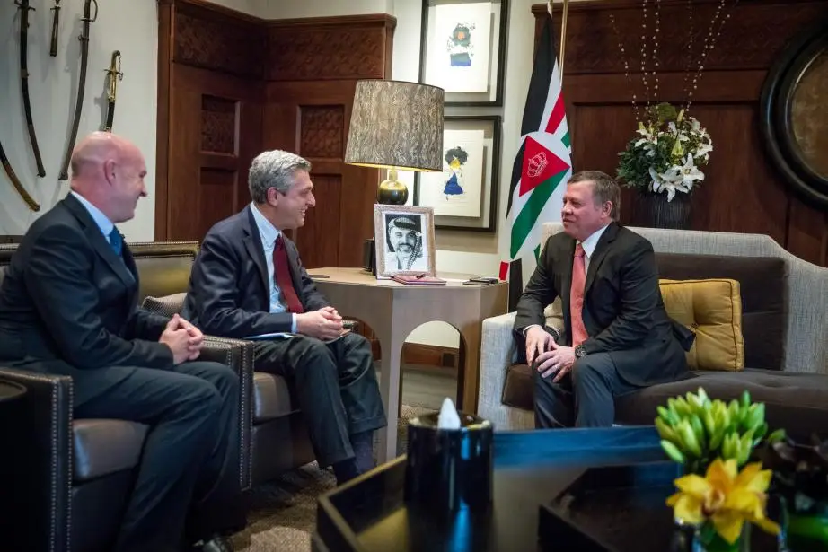 His Majesty King Abdullah II meets with House Armed Services Committee representative Steve Russell and Government Reform Committee representative Stephen Lynch