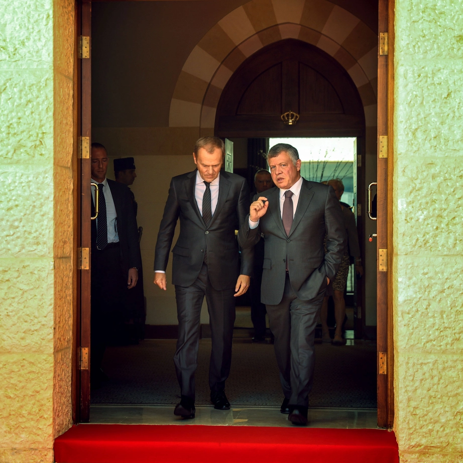 His Majesty King Abdullah II meets with President of the EU Council, Donald Tusk at Al Husseinieh Palace