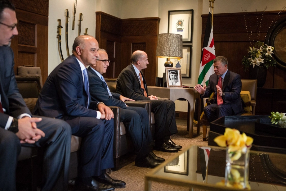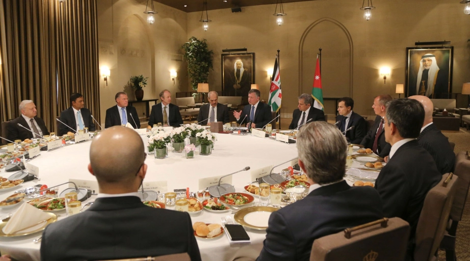 His Majesty King Abdullah II meets with a group of investors at Al Husseinyieh Palace