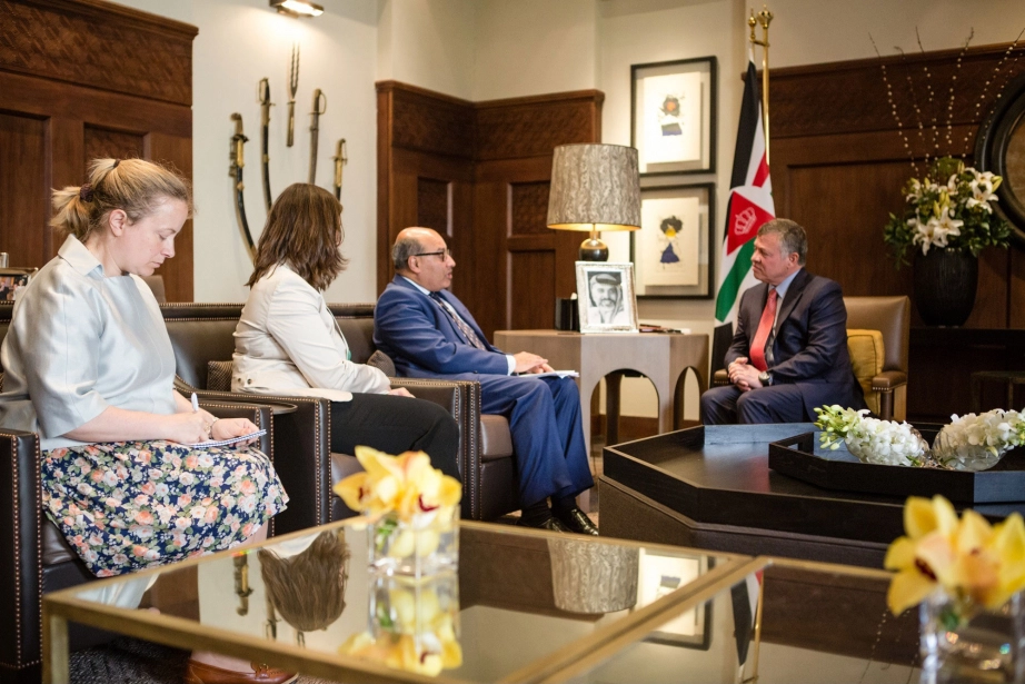 His Majesty King Abdullah II meets with Vice Chairman of General Electric, John Rice and accompanying GE CEOs at Al Husseinyieh Palace
