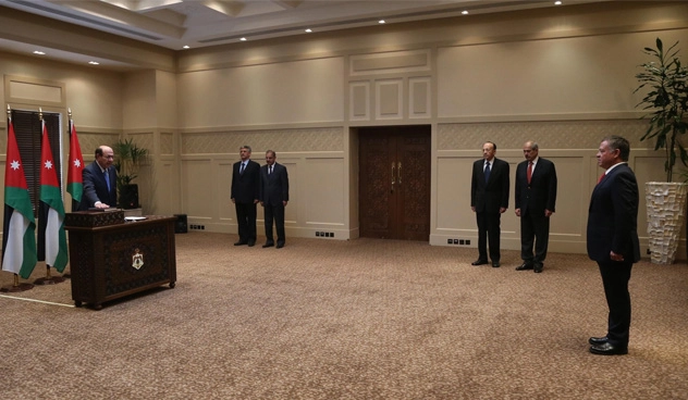 His Majesty King Abdullah II swears in new members of the Constitutional Court at Al Husseinyieh palace